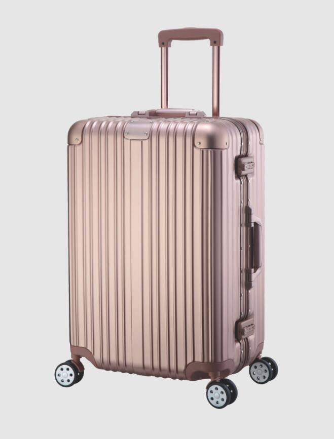名稱:鋁框箱 型號(hào):XB-26 尺寸:20英寸 35*24*49cm 24英寸 42*28*61cm 28英寸 48*29*69cm 材質(zhì):PC+ABS 鋁合金 顏色:商務(wù)銀 /玫瑰金